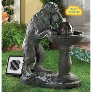 Whimsical faux-bronze fountain depicts a parched pooch lapping up a refreshing cool drink of water. Solar power lets you place this adorable accent anywhere-no plugs required!